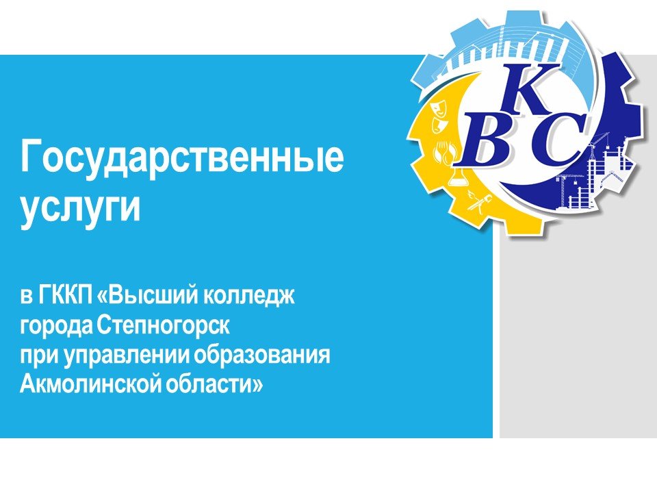 «Ақмола облысы білім басқармасының жанындағы Степногорск қаласының жоғары колледжі» МКҚК Сіздерге «Педагогтерді аттестаттаудан өткізу үшін құжаттар қабылдау» мемлекеттік көрсетілетін қызметін алу мүмкіндігі туралы хабарлайды....