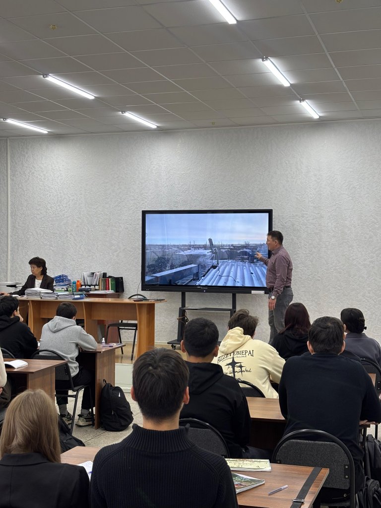 Бүгін ОПИ-2-1 тобының студенттері өз ісінің нағыз маманымен кездесті —Сүлейманов Азат Қайратұлы, «АК Алтыналмас» АҚ технологиялық учаскесінің шебері. Дәріс тақырыбы — «Ақсу фабрикасындағы қолданыстағы флотациялық байыту әдісі». Күрделі технологиялар туралы Азат Қайратұлы қарапайым әрі қызықты түрде айтып берді, өндірістегі нақты мысалдармен бөлісті. Осындай пайдалы әрі шабыттандыратын кездесуге үлкен рақмет!  Болашақ мамандар үшін бұл тәжірибе — нағыз мотивация!